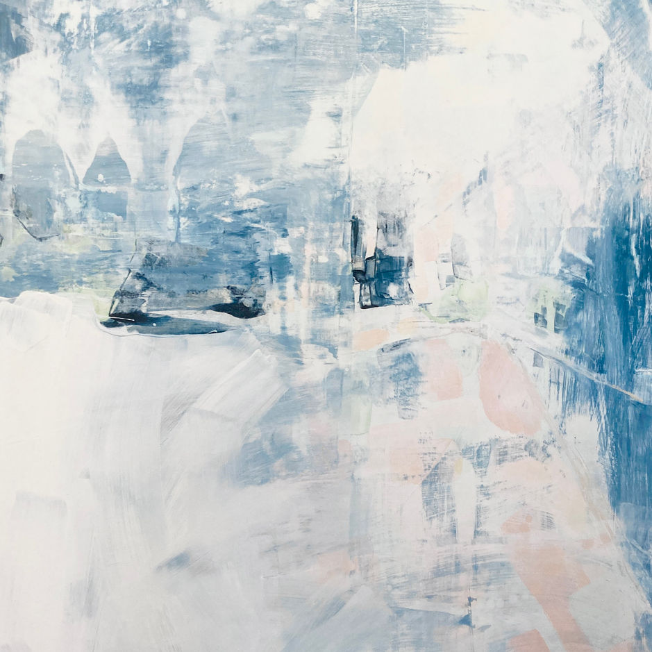 This body of work reflects the theme of 'Opposites,' the push and pull between form and feeling, indulgence and restraint, weight and weightlessness. Some of these pieces are delicate and subtle in their palette, requiring time spent with the paintings —a meditative moment until your eyes adjust and the colours and forms are gently revealed over time. These paintings are more based on feeling and weightlessness rather than being grounded in our material world. Other works are more indulgent, rich in colour, stimulating the senses, form-based, more weighted and of this earth. There is a dance between the two.